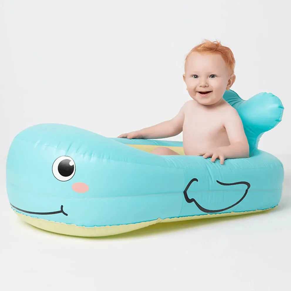 Transforme a hora do banho em um momento de amor, descoberta e aconchego com a Banheira Inflável Baleia Feliz da Buba!