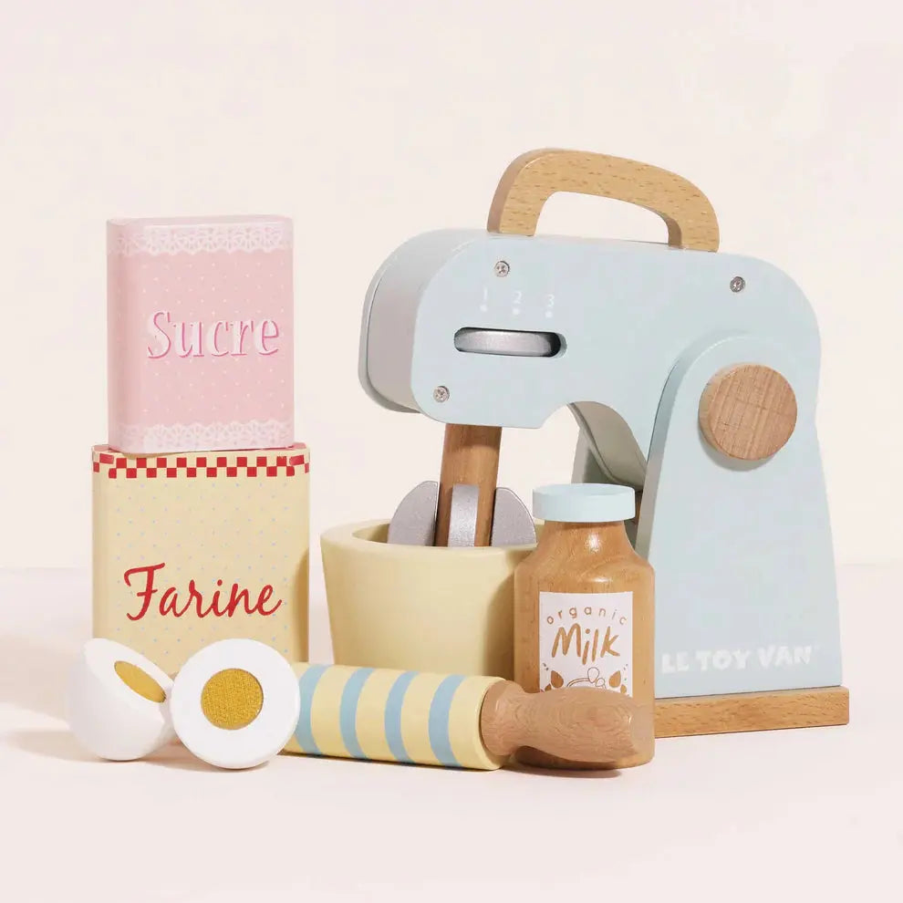 Desperte o chef que existe dentro do seu pequeno com o Honeybake Mixer Set! Este encantador conjunto de batedeira e acessórios de madeira oferece uma experiência de brincadeira realista e envolvente, perfeita para estimular a imaginação, a criatividade e as habilidades motoras finas das crianças. Com cores suaves em tons pastéis e um design retrô encantador, cada momento na cozinha de brinquedo torna-se mágico.