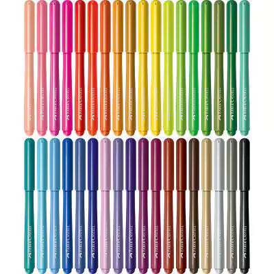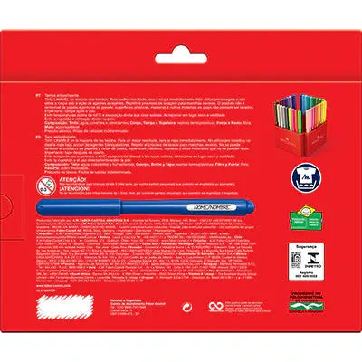 Um primeiro mundo de cores para momentos cheios de afeto entre bebê e cuidador. A Caixa de Canetas Hidrográficas 36 cores Faber-Castell foi desenvolvida para transformar riscos e rabiscos em descobertas sensoriais: cores vibrantes, toque suave e um estojo prático que convida à exploração guiada. Perfeita para estimular a curiosidade, o vínculo e os primeiros gestos que constroem coordenação e confiança.