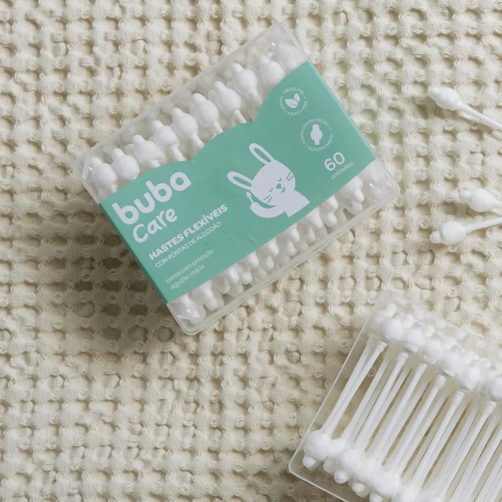 Com as hastes flexíveis Buba Care, a higiene do bebê fica mais prática, segura e delicada.