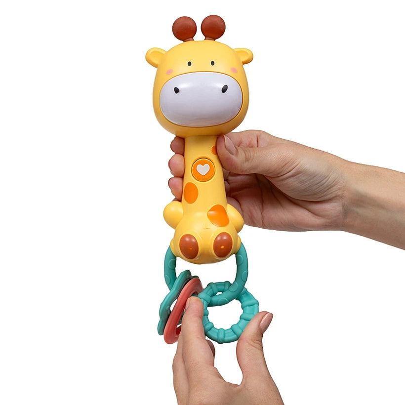 A Girafa Musical Buba é o brinquedo perfeito para encantar os pequenos! Colorida, interativa e superdivertida, ela combina luzes, sons e mordedores para estimular diferentes sentidos da criança de forma lúdica e segura. Sensível ao movimento, basta chacoalhar para descobrir ritmos, sons de animais e instrumentos musicais, tornando cada momento uma nova descoberta.