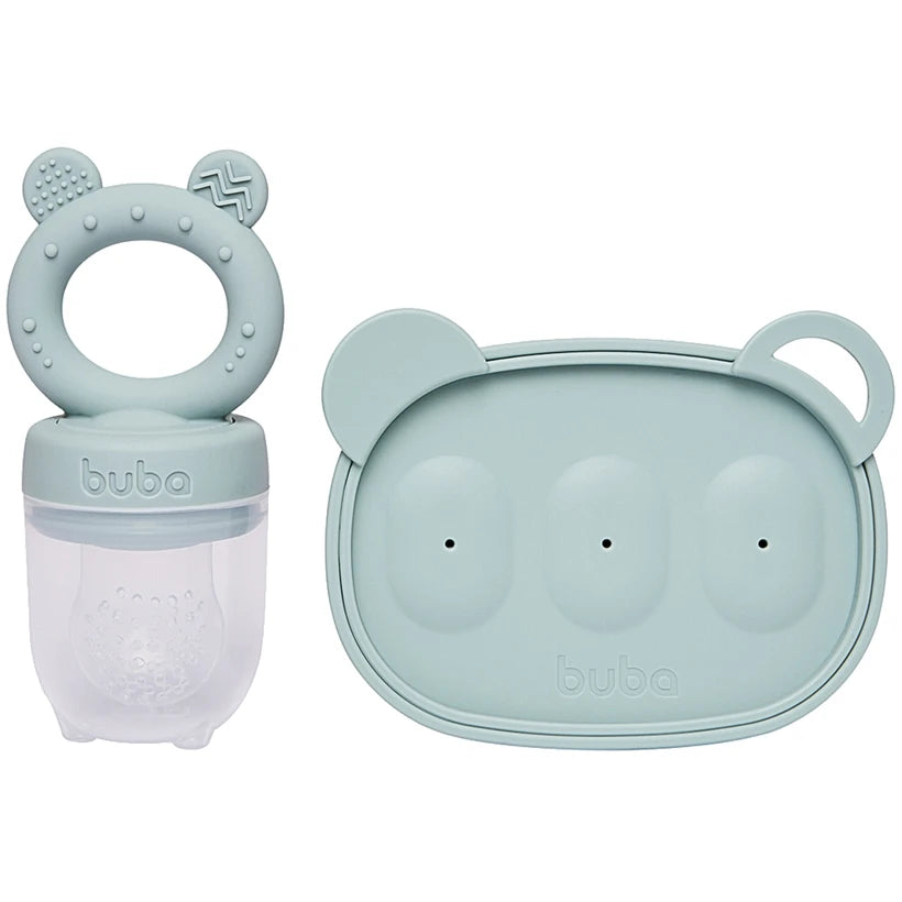O Kit Porta-Frutinhas e Forminha de Leite Buba foi pensado para acompanhar cada etapa da introdução alimentar com cuidado e praticidade. A forminha permite congelar leite materno ou outros líquidos em porções ideais; o porta-frutinhas, com sugador em silicone e alça texturizada, apresenta sabores de forma segura e massageia a gengiva, ajudando no conforto do bebê. Com design anatômico e materiais atóxicos, é perfeito para as mãozinhas que estão descobrindo o mundo.