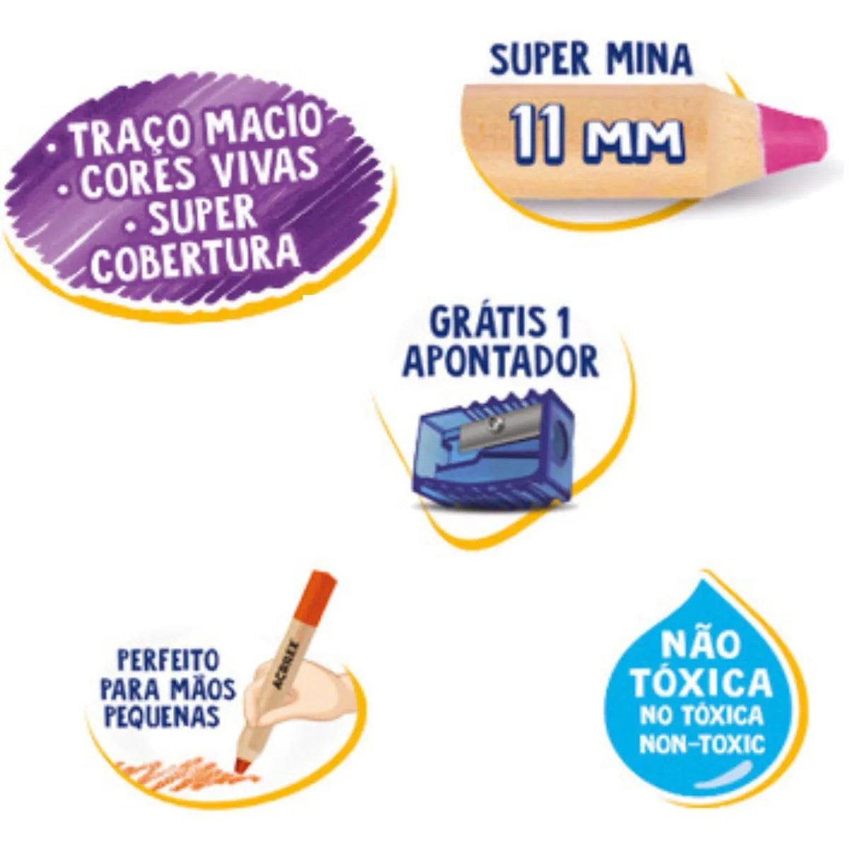 Cada traço desenhado é um gesto de expressão, escuta e afeto. Com os Lápis Jumbo Acrilex, sua criança mergulha num universo de cores, aprendizados e conexões tudo com segurança, propósito e alegria.