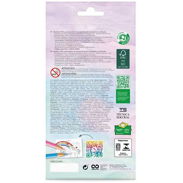 Lápis de Cor Unicórnio Faber-Castell (12 cores + 2 “misturinhas”) é um convite mágico para a imaginação, perfeito para momentos criativos em casa ou na escola. Com corpo decorado e efeito especial de mistura de cores, cada lápis desperta a curiosidade e incentiva a expressão artística de forma lúdica e segura.
