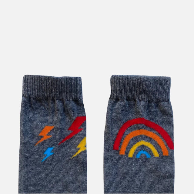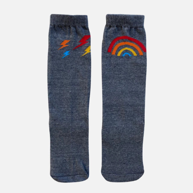 A Meia Arco e Raio Chumbo Cantarola é o toque perfeito de conforto e estilo para os pezinhos das crianças e também para os adultos que adoram um visual moderno e divertido. Feita com algodão macio e fibras de alta qualidade, essa meia é ideal para acompanhar o dia a dia com suavidade, respirabilidade e durabilidade.