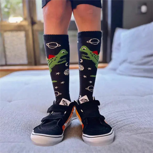 A Meia Godzila é aquela peça que faz barulho no look e fica perfeita no pezinho seja para brincar ou criar memórias estilosas em família.