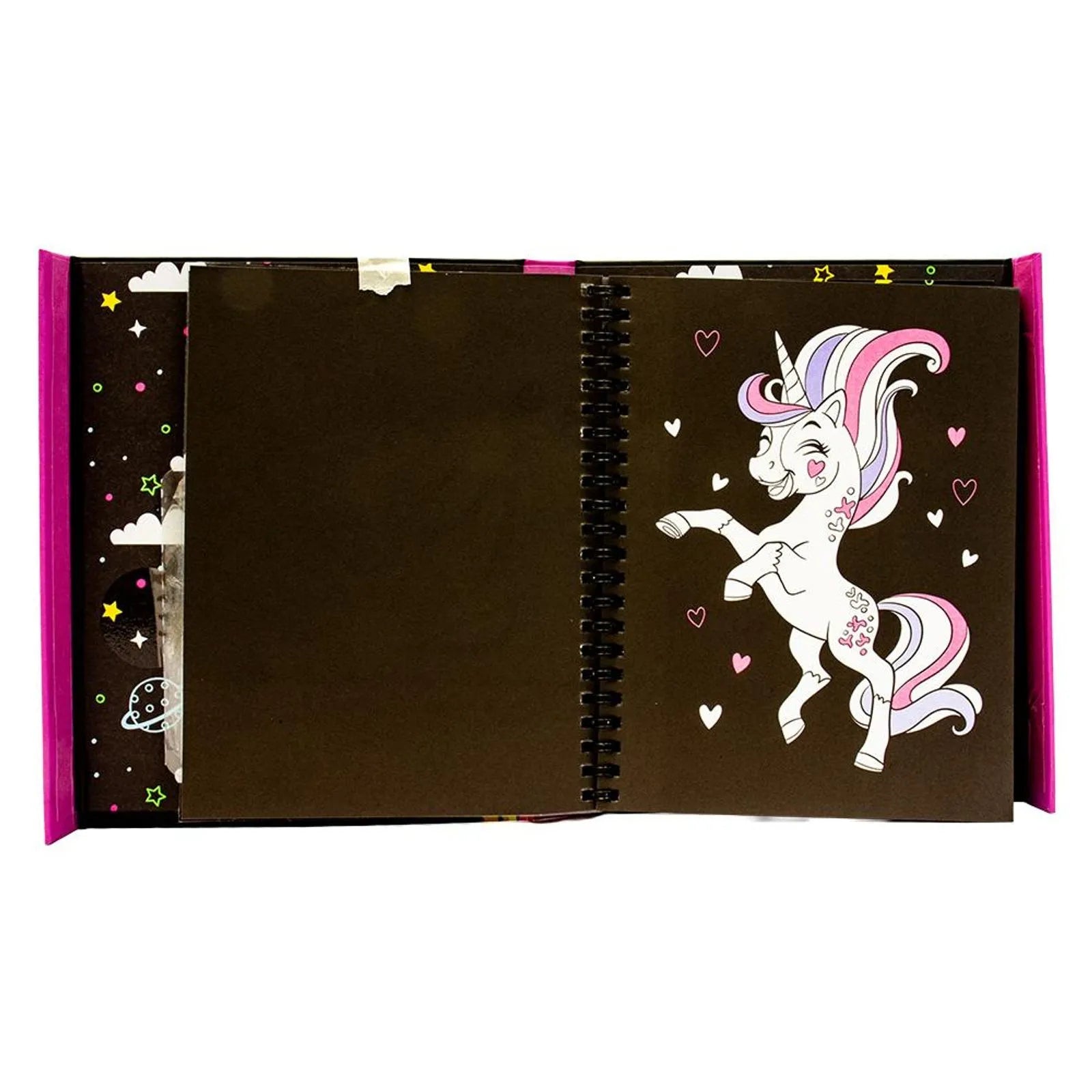 Mergulhe em um universo mágico de cores vibrantes com o Meu Mundo Neon: Unicórnio, um livro criativo que desperta a imaginação e encanta crianças a partir de 4 anos. Com canetas neon, adesivos brilhantes e uma experiência visual cheia de fantasia, este kit é perfeito para estimular a criatividade de forma divertida e segura.