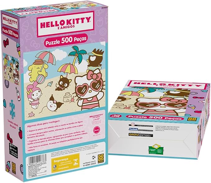 Transforme momentos em família em lembranças inesquecíveis com o encantador Quebra-Cabeça Hello Kitty e Amigos 500 Peças da Grow. Uma atividade divertida, educativa e perfeita para crianças a partir de 10 anos, adultos e para todos que amam a gatinha mais famosa do mundo.