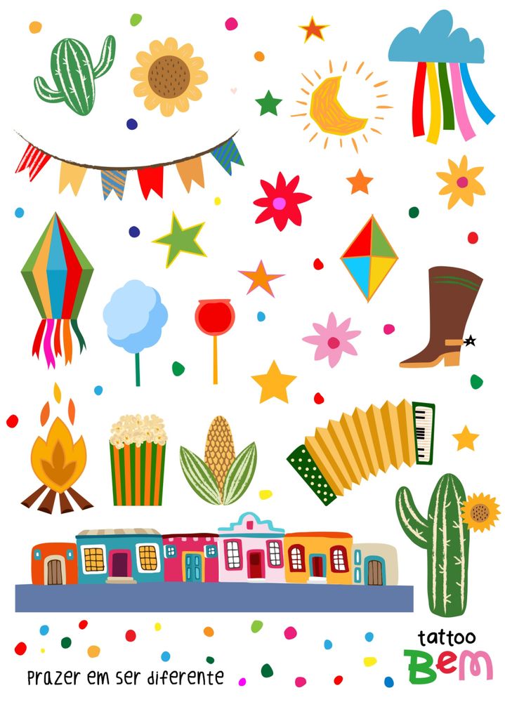 Divirta-se com a Tattoo Temporária Arraiá Bom da TattooBem, perfeita para adultos e crianças compartilharem momentos de alegria e criatividade. Ideal para festas, eventos ou brincadeiras do dia a dia, nossa tatuagem temporária traz diversão garantida para toda a família.